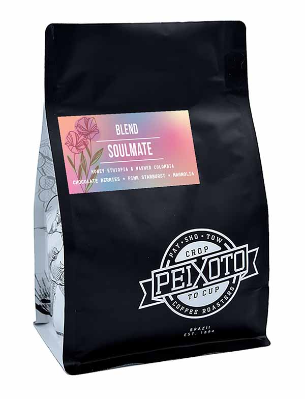 Inspired by first love and the fun, sweet experience of it. The sweet, fruity, candy flavors with a hint of magnolia give the feeling of kicking your feet and butterflies in your stomach. This blend of an Ethiopian honey-processed coffee, and a Colombian washed coffee make the perfect drink to share with your Soulmate.